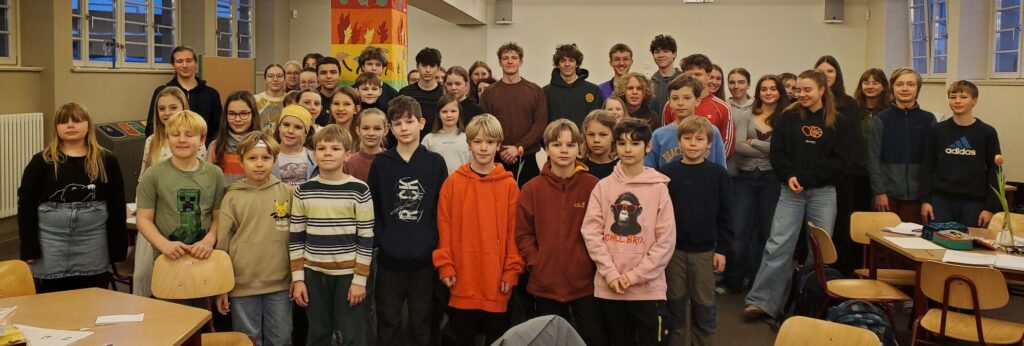 Zum fünften Mal rief die Jenaplanschule die pfiffigsten Tüftler*innen zur Teilnahme am diesjährigen Bolyai-Wettbewerb auf. Wir starteten mit der bisherigen Höchstzahl von insgesamt 59 Schülerinnen und Schüler aus den Jahrgängen 3 bis 12, verteilt auf fünfzehn Teams. Die klugen Mathematiker, die schlauen Gurken, die Sigma*innen oder die Algebros waren mit dabei.